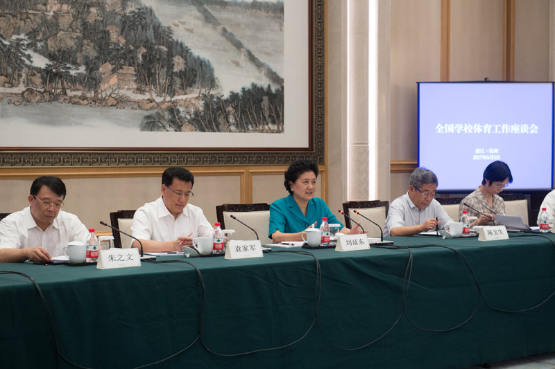 9月3日,中共中央政治局委员、国务院副总理刘延东在杭州出席全国学校体育工作座谈会。新华社记者 翁忻旸 摄
