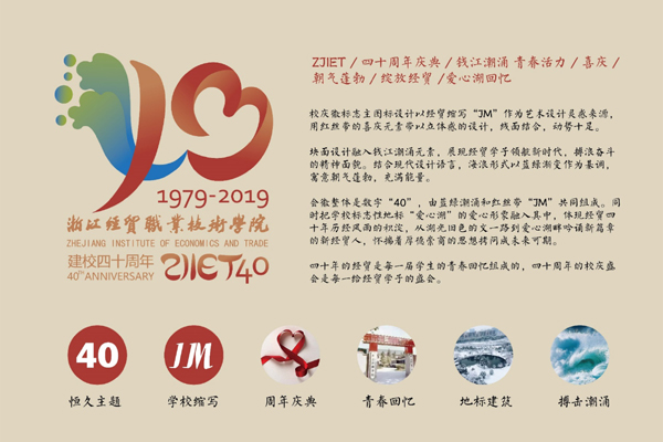 学校40周年校庆标识(LOGO)设计方案征集活动启动以来,共收到45件应征作品。学校对应征作品进行评选,共评选出一等奖1个,二等奖2个,三等奖3个。现将获奖情况予以公示,公示时间为2019年11月21日-28日。如有意见请向学校宣传部反映。联系人:李孜慧,电话:0571-86929713。