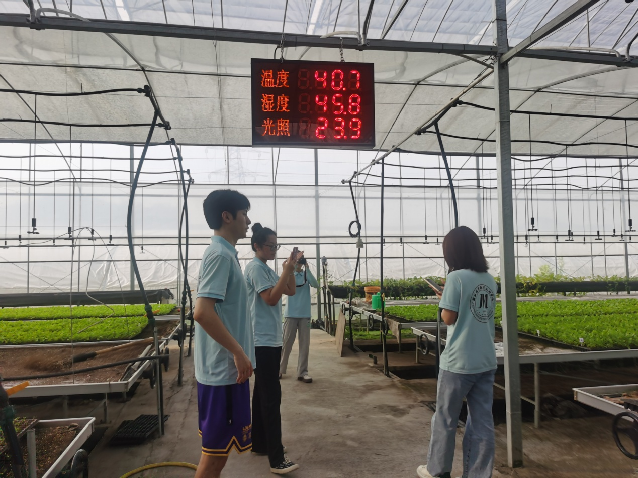 实践团走进杭州市最大的菜篮子基地之一——杭州满山红蔬果专业合作社,开展数字农业发展专题调研。在合作社里,队员们看到耕作、播种、育苗、移栽、施肥、灌溉等作业环节已经实现了机械化、智能化。“我们已经启动肥水一体化、物联网系统等智慧农业手段,但离我们的目标还不够。希望未来我们可以加强校企合作,加强数字赋能。”杭州满山红蔬果专业合作社相关负责人表示。