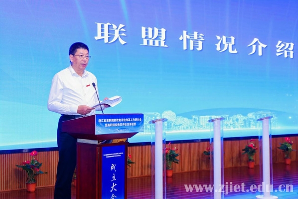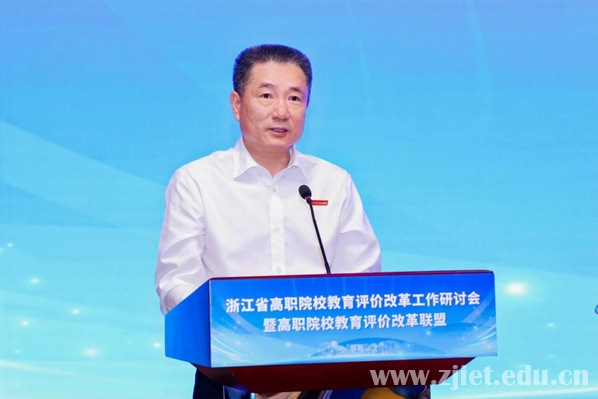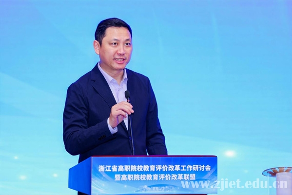浙江省教育厅党组成员、副厅长谢斌出席活动并致辞,他总结了我省教育评价改革的进展情况,阐述了教育评价在建设教育强省乃至教育强国的重要作用;肯定了全省各高职院校探索各具特色的教育评价改革项目,形成不少优秀的典型案例,取得了显著的工作成效;希望联盟在推进研讨交流、资源共建共享、典型案例培育、评价队伍建设、现代职业教育体系、“三支队伍”建设等方面发挥好桥梁作用、培育作用和智库作用。