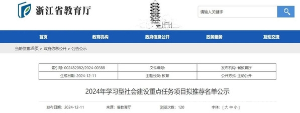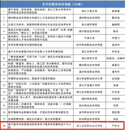 近日,浙江省教育厅公布了2024年学习型社会建设重点任务(继续教育领域)项目拟推荐名单,我校申报的《基于数字化转型驱动的终身学习服务体系整体设计与实践》项目成功入选。